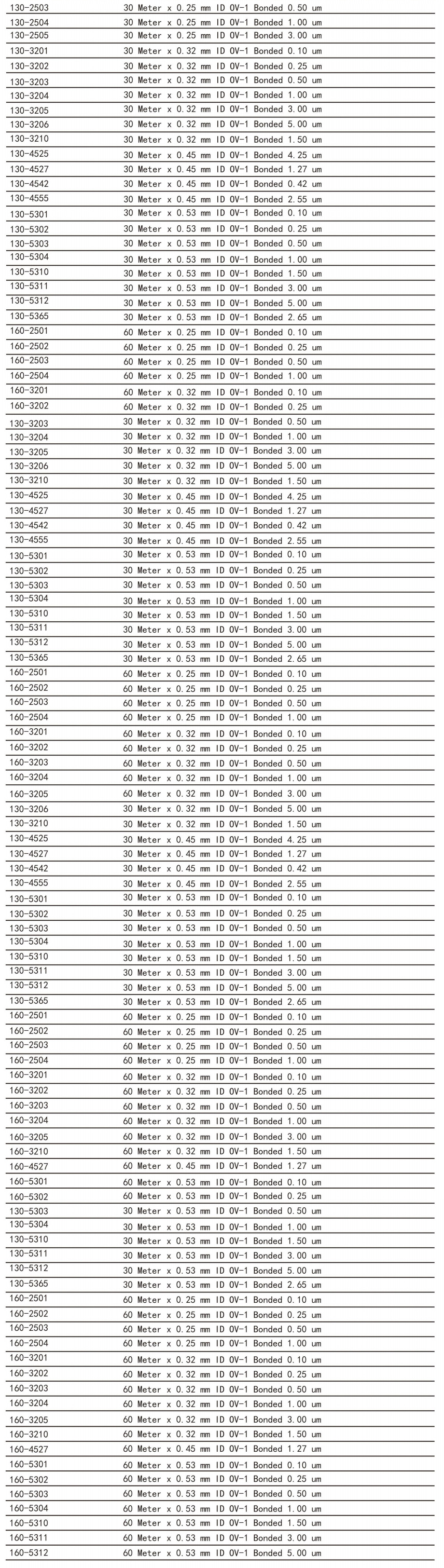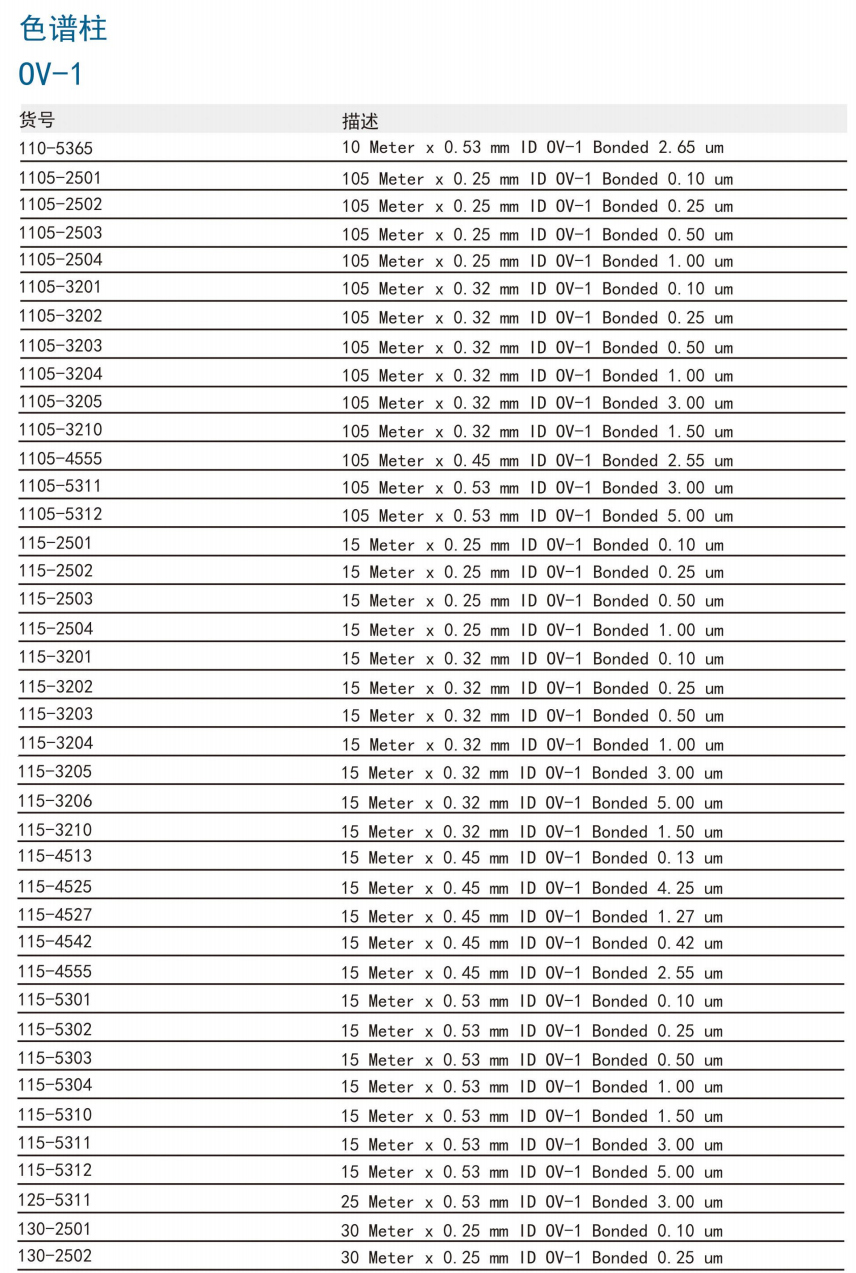 常规毛细管色谱柱 交联毛细管色谱柱 PLOT毛细管色谱柱 专用毛细管色谱柱